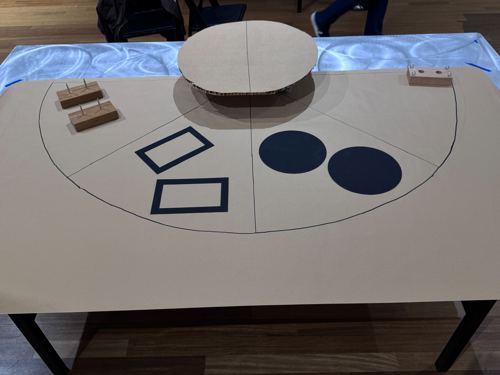 - Fold the tabs and tape them to the base to make the cardboard obstacle stand up.