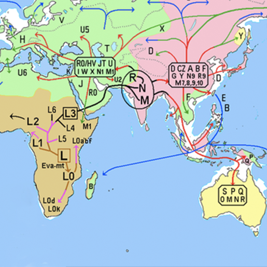 The reason scientists use mtDNA is that it mutates fast enough that changes can be noted from our fairly recent past, and it passes from mother to children relatively intact. People can be grouped together based on when their ancestors migrated out of Africa thousands of years ago and where they went.