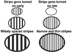 The pigment genes are turned on or off by other genes. It is these genes that set up the pattern of stripes in a zebra.
