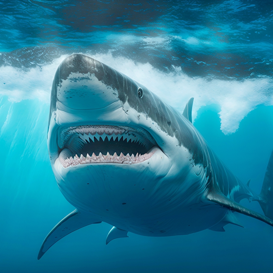 Scientists originally thought that the Great White shark was descended from the megalodon (Otodus megalodon), a massive ancient shark that lived 23 to 3.6 million years ago. Both the megalodon and the Great White have serrated teeth (like a saw), which suggested a possible ancestral link between the two species. However, recent evidence has pointed to a more likely ancestor for the Great White.