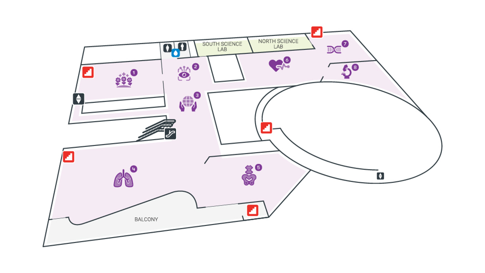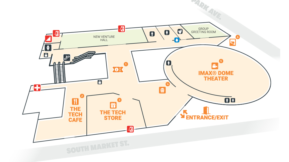 The Tech has two levels of galleries with interactive exhibits, the IMAX® Dome Theater, cafe, and store.