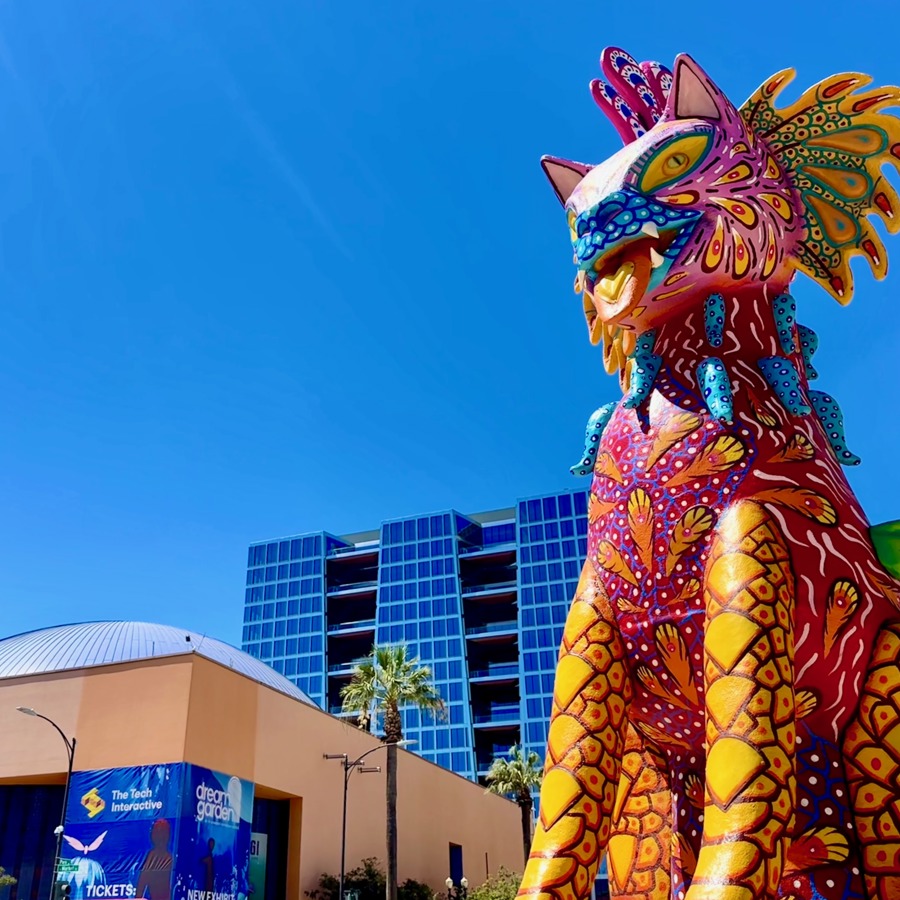 If you’ve walked past The Tech Interactive recently, you’ve probably noticed them: Towering, otherworldly creatures glowing in vibrant colors, their intricate patterns swirling under the San Jose sun (and even more spectacular, under the night sky). They are alebrijes, a dazzling fusion of Mexican folk art, imagination, and cultural heritage, and they’ve arrived in San Jose as part of Alebrijes en San José.